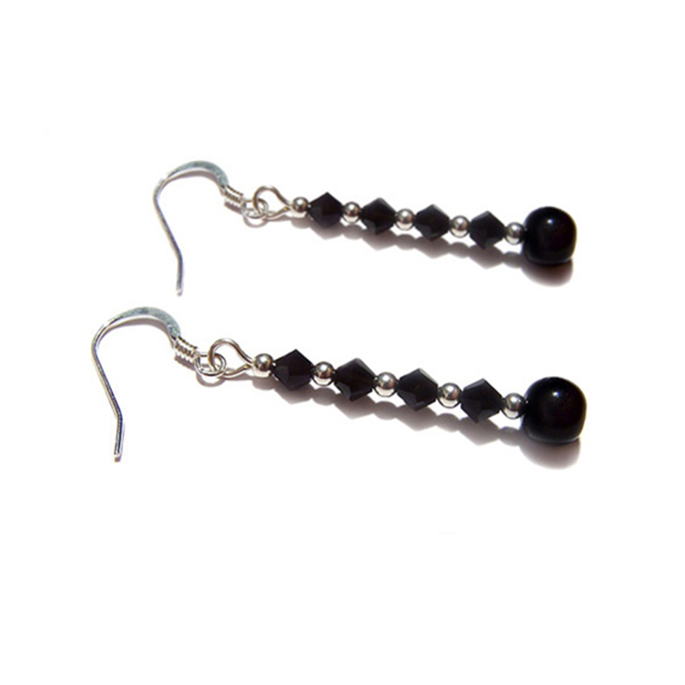 - Jeder Ohrring verfügt über eine funkelnde Strähne aus schwarzen Kristallen, die mit einem natürlichen schwarzen Onyx-Edelstein, der an einem 925/1000 Sterling-Silber-Haken hängt, ergänzt werden. Der Tropfen misst 3,5 cm.